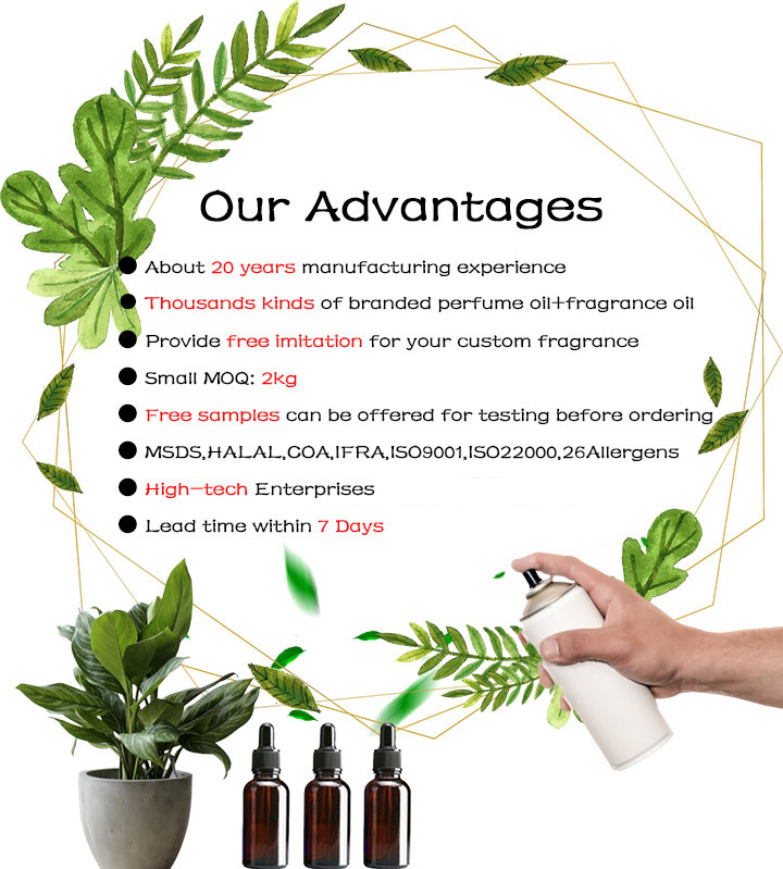 কোম্পানিটি 2010 সালে প্রতিষ্ঠিত হয়েছিল। এটি একটি উচ্চ প্রযুক্তি সম্পন্ন কোম্পানি এবং চীনের গুয়াংজু বন্ডেড এলাকায় অবস্থিত। কোম্পানিটি প্রধানত প্রায় 4000 ধরনের ফ্লেভার এবং 7000 ধরনের সুগন্ধি তৈরি করে। বিশেষ করে, আমরা 800-এর বেশি ধরণের পারফিউম সুগন্ধি তৈরি করতে পারি।